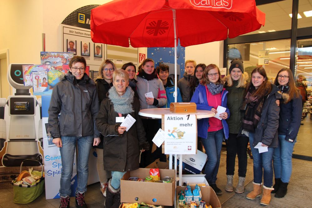 Unsere Firmlinge sind ebenfalls aktiv. Sie stehen am Samstag 7. März vor dem REWE Markt in Westhausen und freuen sich über Lebensmittelspenden.