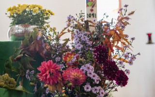Es ist selbstverständlich, dass der Altarraum unserer Kirche mit Blumen geschmückt ist. Mal mit bunten Blumen aus Feld und Garten, mal