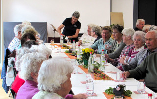 Zu einem adventlichen Nachmittag waren die Seniorinnen und Senioren von St. Mauritius im Gemeindesaal St. Martin zusammengekommen. Der Schein der Kerzen und eine Tischdekoration in den Farben Rot und Grün zauberten eine heimelige Stimmung. Nach der Begrüßung durch Erich Hoffmann und einer kurzen Einstimmung mit Gedanken zu „Liedern des Advents“ von Paul Weismantel wurden die Gäste mit Kaffee, Kuchen und Weihnachtsstollen bewirtet.