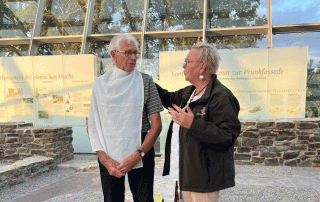 Im besinnlichen Teil ließ man die Inhalte von drei Adventsliedern auf sich wirken. Ergänzt wurden die Liedtexte durch entsprechende Bibelstellen; dazu regten passende Bilder die Sinne an. Auch wurde versucht, einen Bezug zum Hier und Heute darzustellen. Eine besonders festliche Note erfuhr der Nachmittag durch das zarte Saitenspiel des „Veeh-Harfen-Trios“.