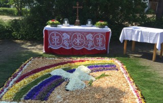 Dort wurde inzwischen der Festgottesdienst, den Prälat Werner Redies zelebrierte, gefeiert. Mitgestaltet haben diesen Gottesdienst die Erstkommunionkindern der Seelsorgeeinheit und die Band Immanuel.