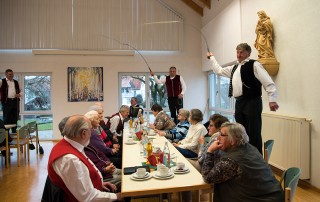 Da war mal was los. Irgendwann hatten wir die Absicht, bei einem Begegnungsnachmittag zu singen und dann, wie ein Zufall, ergab sich die Gelegenheit, dass die „Underschnoidamr Goiselschnalzer“ zu uns zu Besuch kamen.