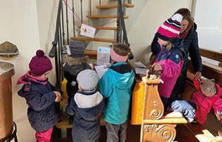 Was wäre, wenn der liebe Gott unsere Welt im Dunkeln gelassen hätte? Dies durften die Kinder in einer aufgebauten „Dunkelkammer“ erahnen. Darin waren Gegenstände versteckt, die zu ertasten waren. Bald waren sich alle einig, dass es ein großes Glück bedeutet, dass Gott uns das Licht geschenkt hat. In der wunderschönen Sandlandschaft durften alle „Wasser und Land“ spielen. Sandberge zu bauen und Flüsse und kleine Seen entstehen zu lassen, machte den Kids natürlich riesig Spaß. An einer weiteren Station wurde die Erschaffung von Sonne, Mond und Sternen meditativ erarbeitet und mündete dann noch in Bewegung und Tanz. An den 5. Schöpfungstag erinnerte ein Geschicklichkeitsspiel, wo große und kleine Fische, Krebse und andere Tiere, die im Wasser leben, aus dem kleinen Pool geangelt wurden. An einer weiteren Station ging es um die Tiere am Land. Hier wurden eifrig gebastelt und gemalt und so entstanden schöne Tiermasken. Allen Menschen, den großen und kleinen, dicken und dünnen, hell- und dunkelhäutigen, hat Gott diese schöne Erde anvertraut. Auf dem Platz vor der Kirche haben sich die Kinder mit Kreide auf den Boden gemalt, als Zeichen, dass Gott jeden einzelnen wunderbar erschaffen hat. Nur schade, dass der zwei Tage später einsetzende Regen, der so dringend nötig war, diese Kunstwerke wieder weggewaschen hat. Bleiben wird aber noch lange die Freude über diesen wunderschönen Nachmittag, der nach einem Gruppenfoto mit einem Festmahl endete, wobei die selbstgemachten Spieße mit Baguette sichtlich mundeten.