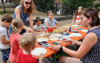 Zu Spiel und Spaß rund um die Schöpfungsgeschichte waren 28 Kinder auf das Spielgelände des Kindergartens St. Martin Westhausen gekommen. Gestaltet wurde der fröhlich-bunte Nachmittag im Ferienprogramm für Kinder ab 3 Jahren von Ehrenamtlichen aus dem Team „Kleine Freunde Jesu“ der Kirchengemeinde St. Mauritius.