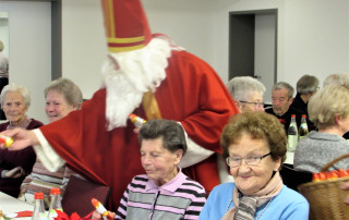 Zur Adventsfeier der Seniorenbegegnung St. Mauritius Westhausen durfte Erich Hoffmann zahlreiche jung gebliebene Damen und Herren im festlich geschmückten Gemeindesaal St. Martin begrüßen. Bei Kaffee und Gebäck wurden eifrig Gedanken ausgetauscht und die Freude über das Zusammensein war deutlich zu spüren. Im besinnlichen Teil ließen sich die Gäste in Liedern und Texten auf diese Zeit der Erwartung einstimmen. Ein Schwerpunkt im Programm war eine Präsentation in Text und Bildern zur Bedeutung der Heiligen im Advent: Barbara, Nikolaus, Lucia und Maria. Dem Veeh-Harfen-Trio gelang es, mit seinen zarten Klängen eine besondere Atmosphäre zu schaffen. Nicht nur Kinder fiebern dem Besuch des Nikolaus entgegen, auch Senioren freuen sich darüber. Erich Hoffmann trat als dieser große Heiligen zur Tür herein und grüßte in gereimten Worten die Anwesenden. Nicht nur Schokoladennikoläuse hatte er zu verschenken, sondern auch zwei Geschichten, eine zum Nachdenken und eine zum Schmunzeln, hatte er mitgebracht. Die Geburtstagskinder des Monats durften sich über ein Ständchen und eine Pflanze freuen. In Texten und mit Bildern untermalt, kam noch eine Kerze zu Wort. Nach dem Schlusswort und Gedanken zum Frieden endete dieser besinnliche Nachmittag mit dem Verteilen des Weihnachtsgrußes, des Heftes „Abendlicher Adventskalender“ und des Jahresprogramms 2023.