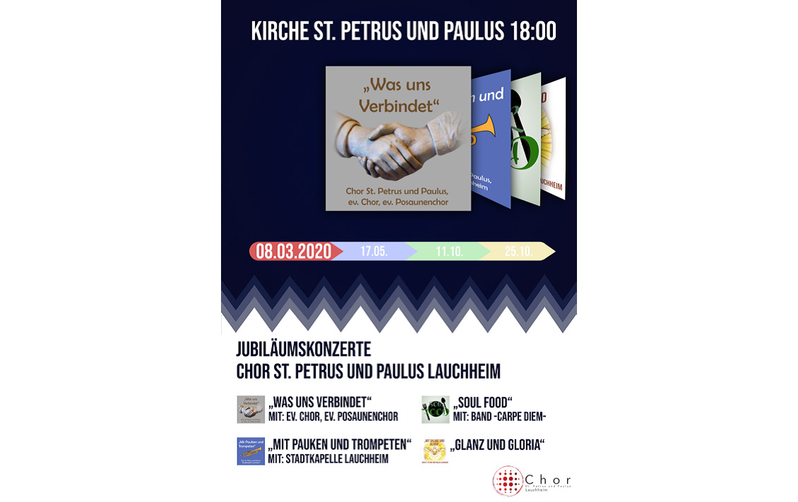 begleiten. Unter dem Motto „Was uns verbindet“ freuen wir uns auf ein erstes gemeinsames Konzert mit dem Chor der evangelischen Kirchengemeinde Lauchheim/Westhausen und dem Posaunenchor am 8. März um 18.00 Uhr in der Pfarrkirche.