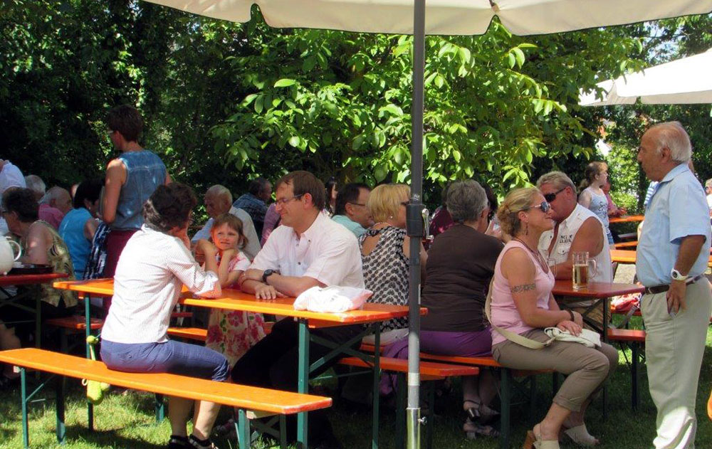 Am Nachmittag des Fronleichnamsfestes laden wir ab 14.30 Uhr herzlich ein zu unserem traditionellen Kirchplatzfest im Garten hinter dem Pfarrstadel. Wir bieten Kaffee und Kuchen, Würste vom Grill, Pommes, Käse und Getränke. Würste und Pommes sind für Kinder frei. Der Musikverein sowie die Concordia mit dem Kirchenchor werden uns musikalisch unterhalten. Um 16.00 Uhr ist eine Kirchenführung. Die Pläne für den Kindergartenumbau können im Gymnastikraum des Kindergartens eingesehen werden. Um 17.00 Uhr erfolgt eine Erläuterung dazu. Der Ausschuss „Mission-Entwicklung-Frieden“ verkauft fair gehandelte Eine-Welt-Waren.