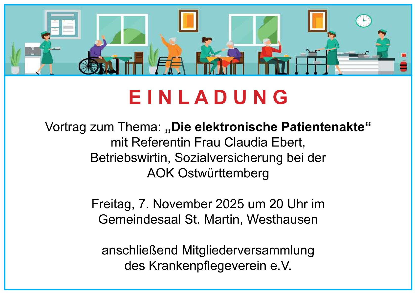 7. November, 20:00 Uhr - 21:30 Uhr Vortrag „Die elektronische Patientenakte“ Gemeindesaal St. Martin Silvesterstraße, Westhausen