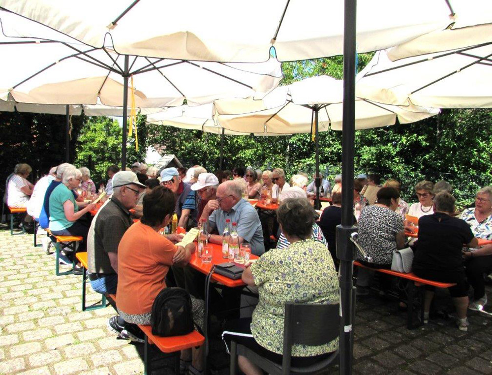 Zu einem fröhlich-bunten Nachmittag hatte die Seniorenbegegnung der Kath. Kirchengemeinde St. Mauritius in den Garten hinter dem Pfarrstadel eingeladen. Viele kamen und genossen diesen sommerlichen Nachmittag, denn an den Tagen zuvor waren sonnige Stunden eine Seltenheit. Erich Hoffmann begrüßte die Teilnehmenden herzlich und mache den Auftakt mit einem Sommergedicht. Alexander Gold griff in die Tasten seines Akkordeons. Mit seiner Musik sorgte er für gute Unterhaltung und zu seinen Melodien sangen die Senioren viele alt bekannte Lieder. Das Team bereicherte das Programm mit lustigen Vorträgen, Scherzfragen, Rätseln und einem lustigen Gesellschaftsspiel. Nach so viel Nahrung für den Geist war es an der Zeit, auch dem Magen etwas Leckeres zu gönnen. Knusprige Brötchen lagen bereit und der Duft von frischem warmem Leberkäs stieg in die Nasen. Alle ließen es sich schmecken. Gegen Ende durften die Geburtstagskinder des Monats gute Wünsche und ein Ständchen entgegennehmen. Zufrieden verabschiedete man sich nach dem Schlusslied, nicht ohne sich ein „Wiedersehen“ bei der nächsten Veranstaltung zu wünschen.